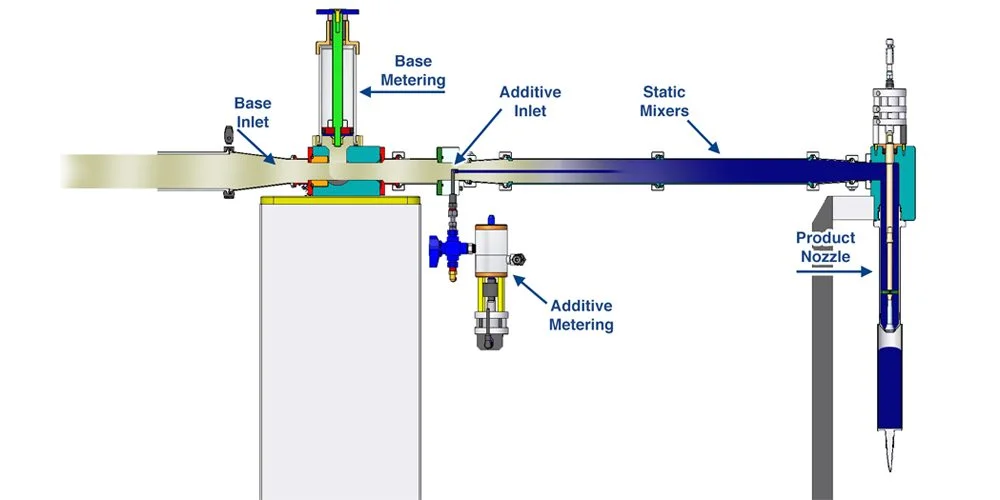 - SERVO driven Base Product & Additive dosing with recipe saving & recall.
